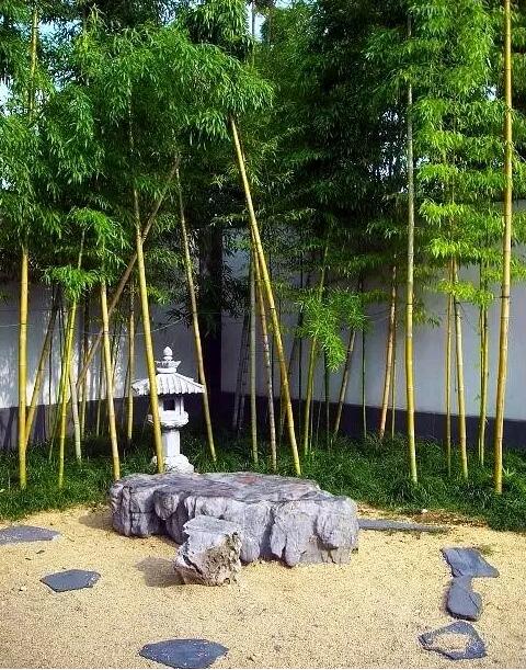 2.與建筑搭配,協調空間。在亭、常、樓、閣、水榭附近,栽植數株翠綠修竹,不僅能起色彩和諧的作用,而且陪襯出建筑的秀麗在房屋和墻垣的角隅,配置紫竹、方竹等,形成層次豐富、造型活潑的清秀景色,使環境變得更為清靜。亭榭之旁,以竹襯托,配石筍三兩,紫竹數竿,生機趣然,富有情趣。