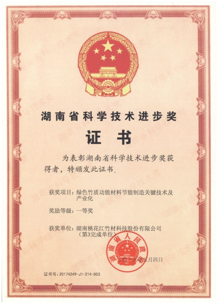 喜訊:桃花江竹材榮獲2017年湖南省科學(xué)技術(shù)進(jìn)步